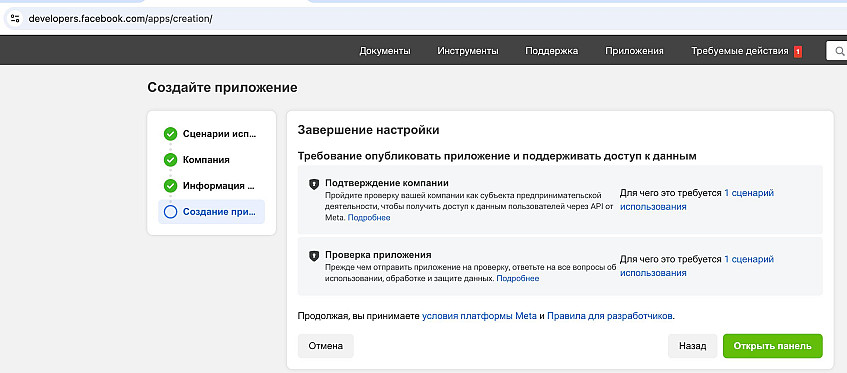 5. Согласитесь с требованиями и нажмите “Открыть панель” и далее “Перейти в панель”.