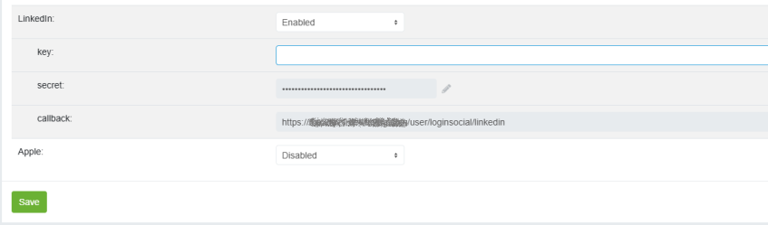 Настройки системы → Пользователи → Социальные сети.Введите значения Идентификатор клиента и Секретный ключ клиента в поля ввода Linkedin.