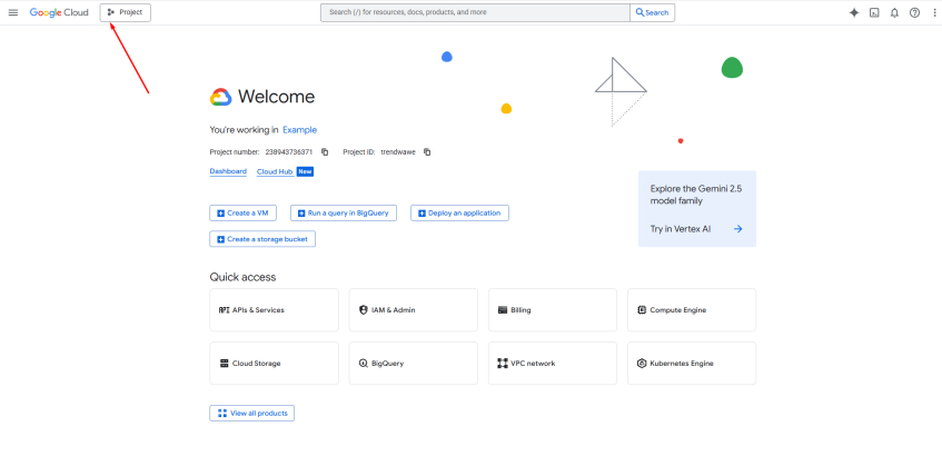 - Перейдите в Google Cloud Console.