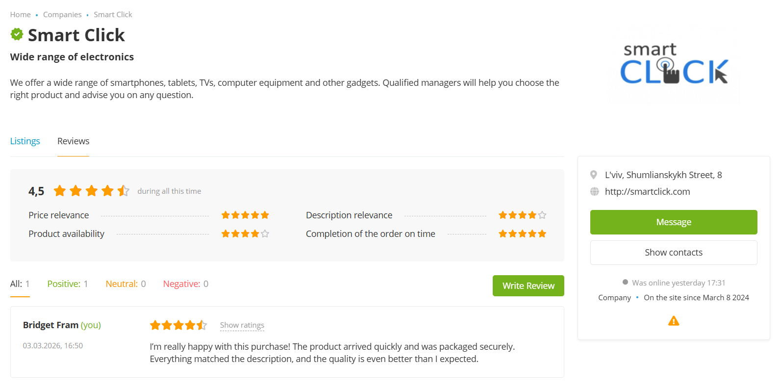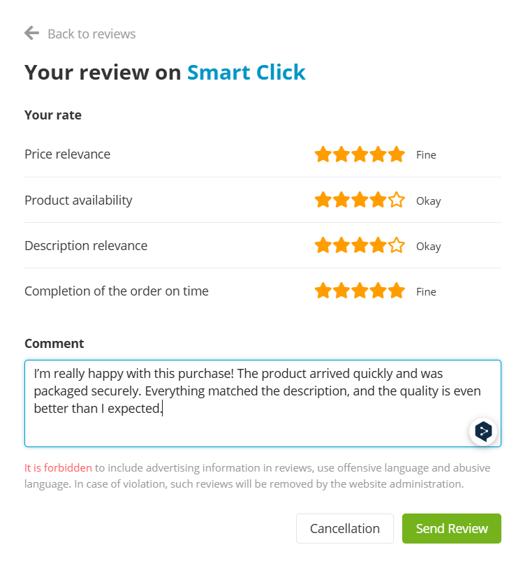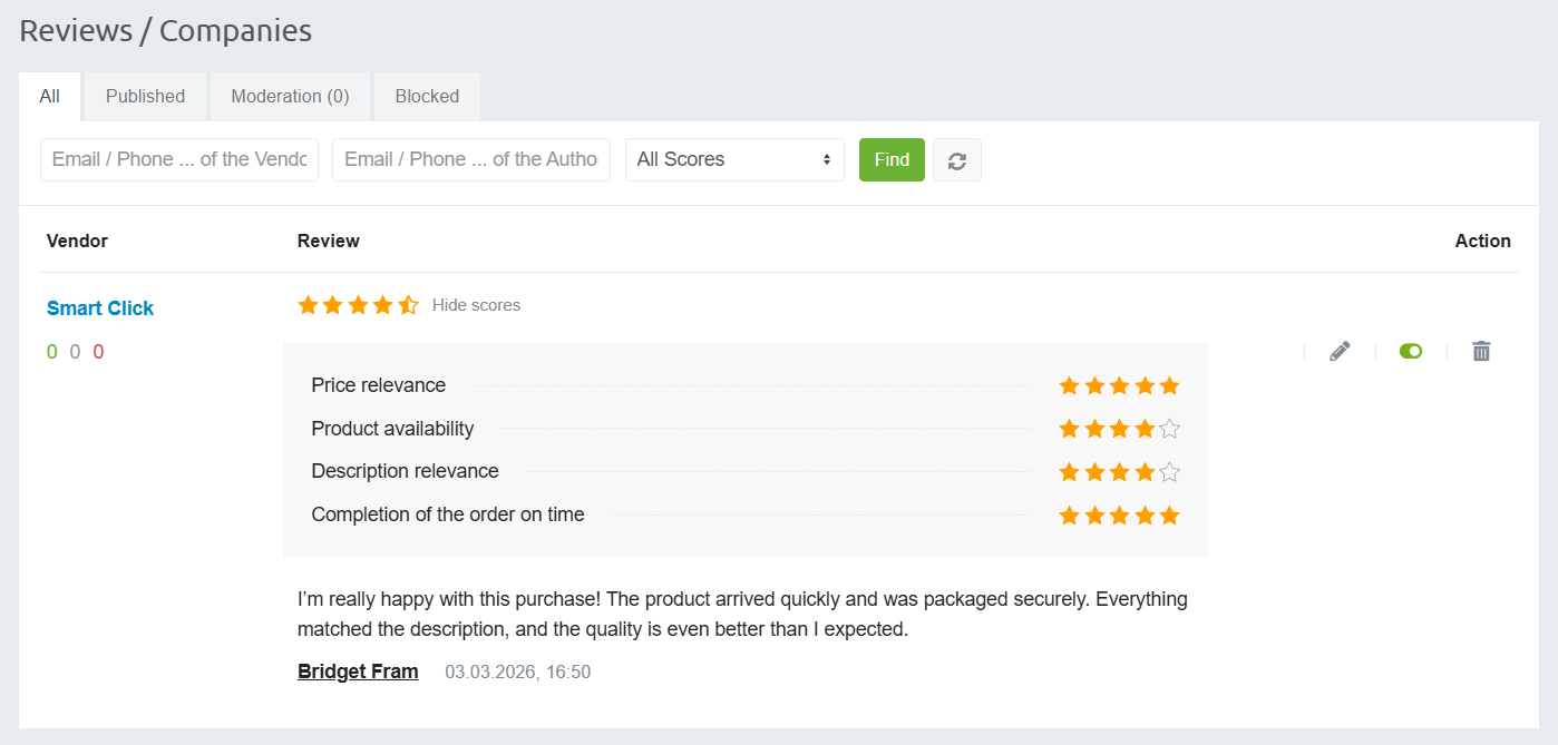 Аддон позволяет добавлять отзывы к компаниям.