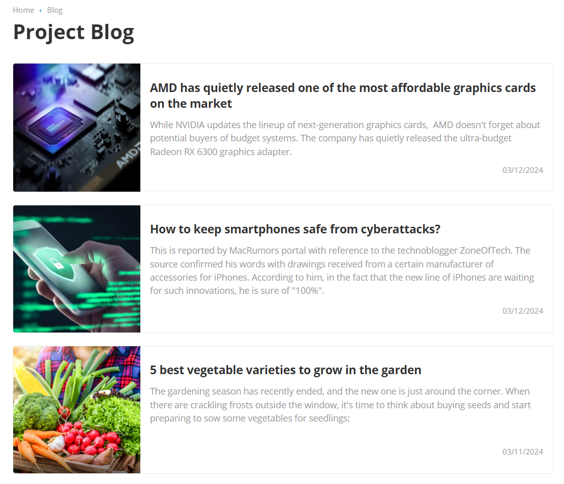 Дополнение позволяет оформить Блог проекта со следующими доступными функциями:
