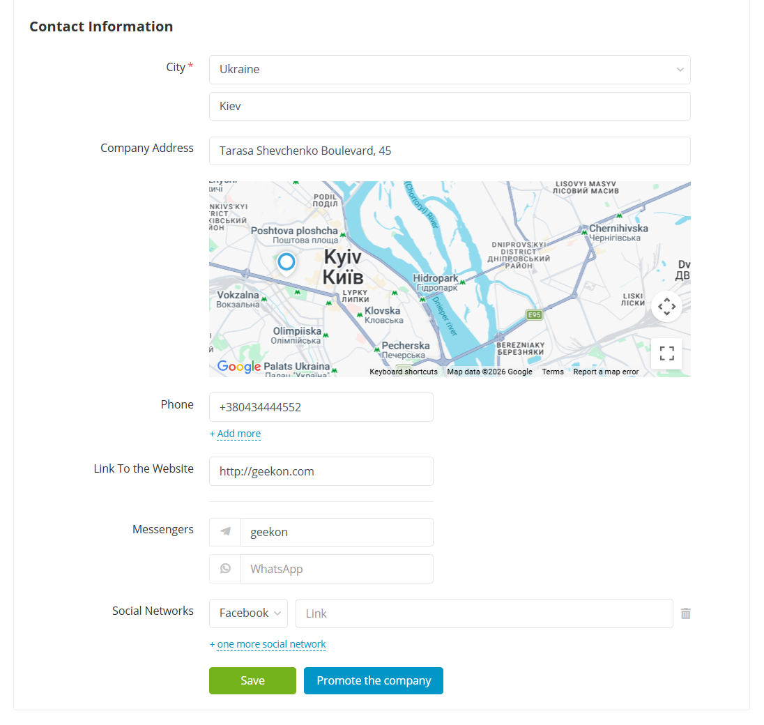 Страница компании