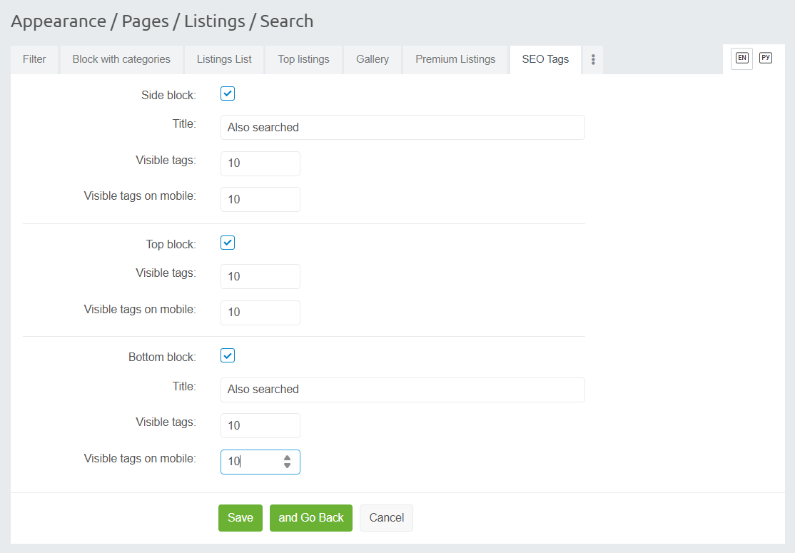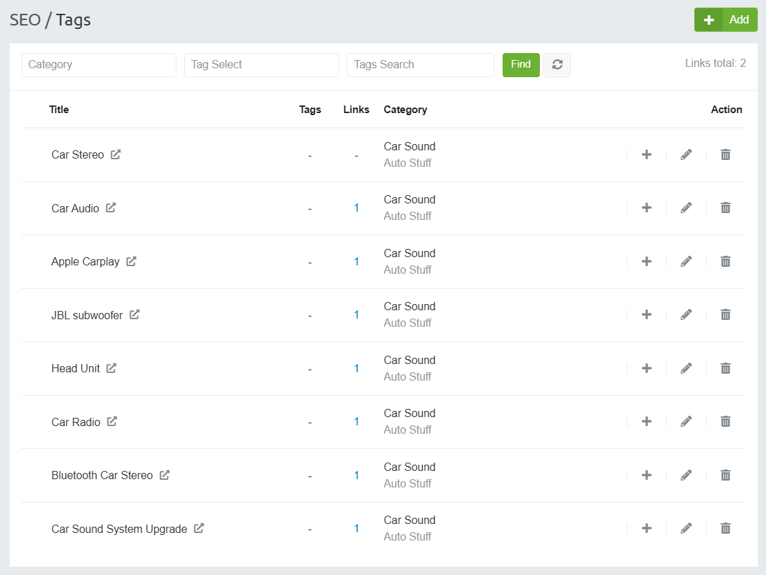Дополнение позволяющее настроить перелинковку SEO-тегов на странице списка предложений категории.